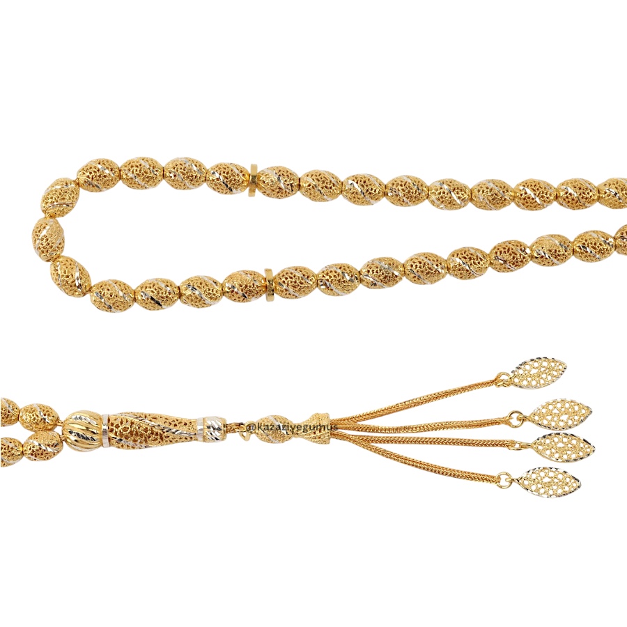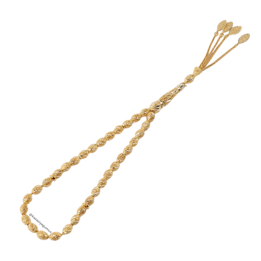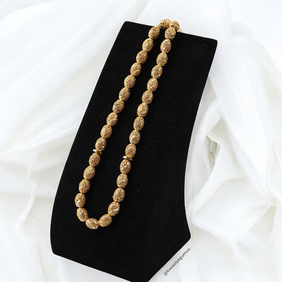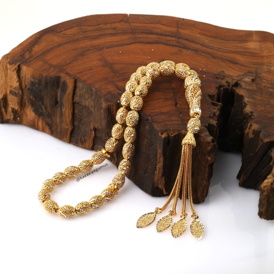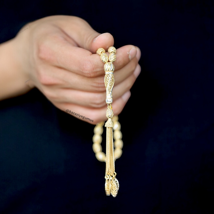 Füzyon tespih modelimiz 925 ayar gümüş üzerine 22 ayar altın kaplama yapılmıştır.